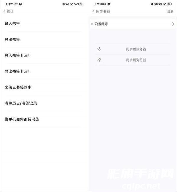 最后说下书签功能吧,支持导入你之前浏览器的书签,支持 html 的格式书签文件。如果你需要书签同步功能,可以通过注册米侠同步账号。