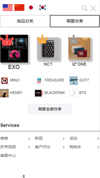 2、提供明星专辑、杂志期刊及其最新歌曲等产品,保证粉丝在第一时间买到明星最新的周边产品。