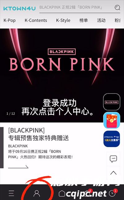 1、进入到k4town软件后,点击个人中心进行登录。