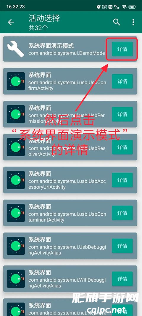 4、接着在打开的新页面中,选择系统界面演示模式其右侧的【详情】按钮