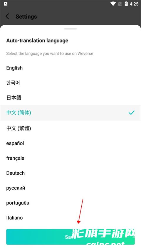 3、然后选择简体中文,点击保存。