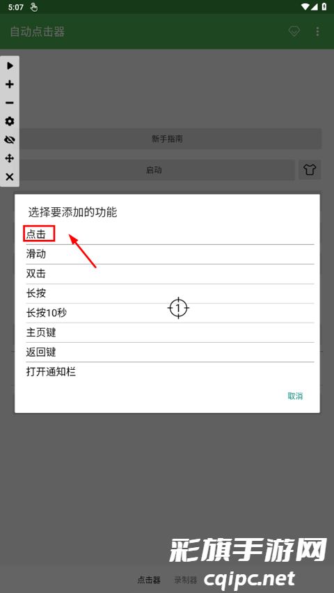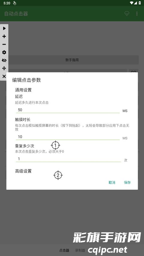 1、打开自动连点器,然后长按屏幕中间的位置点。
