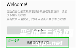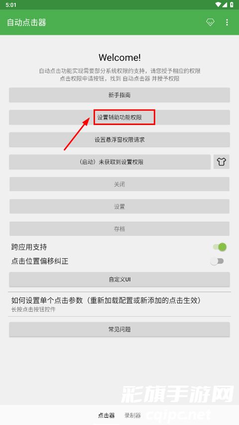 1、首先打开自动连点器app,点击【设置辅助功能权限】;