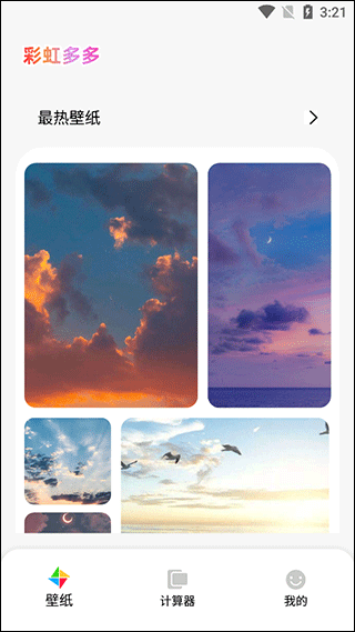 彩虹多多是一款非常好用的手机壁纸软件,软件中有着非常丰富的壁纸资源可以使用并且其中还有各种桌面小组件可以选择,软件的界面设计的非常简洁并且操作起来非常的简单,软件找中有着非常清晰的分类可以方便用户更好的进行选择,软件中每一张壁纸都有着非常高的质量同样的软件可以帮助用户一键设置各种风格的主题壁纸,软件也可以自由的调节壁纸的尺寸大小非常便捷。
