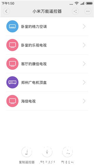 3、复制遥控器——把原配遥控器的按键命令通过手机及遥控中心复制到手机遥控面板。