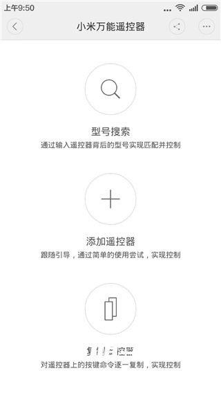 1、型号搜索——通过输入遥控器背后的型号实现匹配连接并控制。