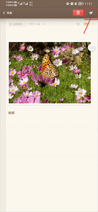 1、将内容编辑完成后,点击右上角纸飞机图标