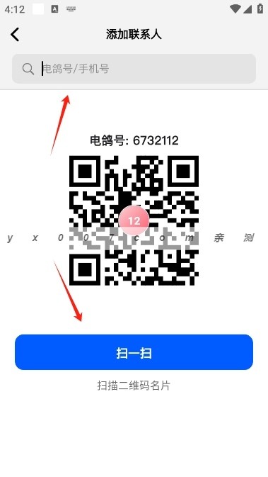 4、之后让对方扫一扫你得二维码名片即可添加,也可以输入电鸽号添加
