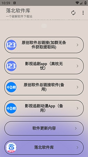 1、进入落北软件库软件之后,有很多的软件分类,影视类、动漫类以及音乐类等。