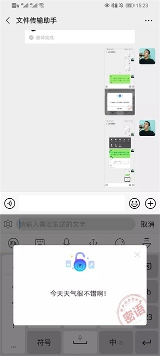 2、我们发送过去的就是一串符号,然后我们需要打开输入框,讯飞输入法就会自动帮助我们翻译,显示在下方的输入法界面上。