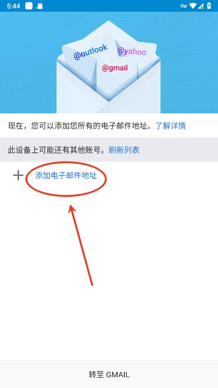 打开谷歌邮箱app之后,点击“添加电子邮件地址”;