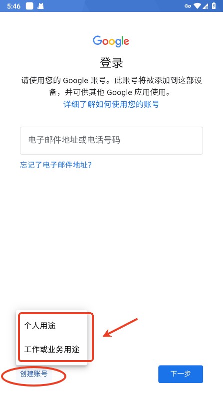 点击左下角“创建账号”,选择个人用途或者工作业务用途;
