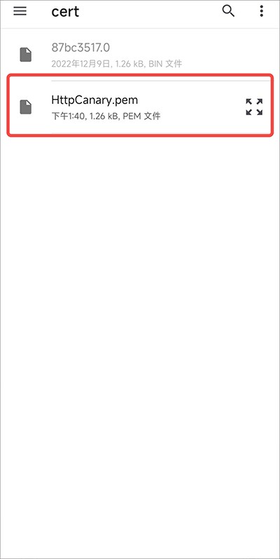 3、 导出类型选择下面这个(.pem)【我这里是未root环境,选择.pem。如果root之后需要更高要求可选.0】