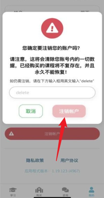 5. 在弹出框中输入“delete”并再次点击「注销账户」,系统将永久清除该账号数据。