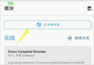3、进入模块管理的功能之后我们可以看到在最上面有一个从本地安装的功能,我们点击这个从本地安装