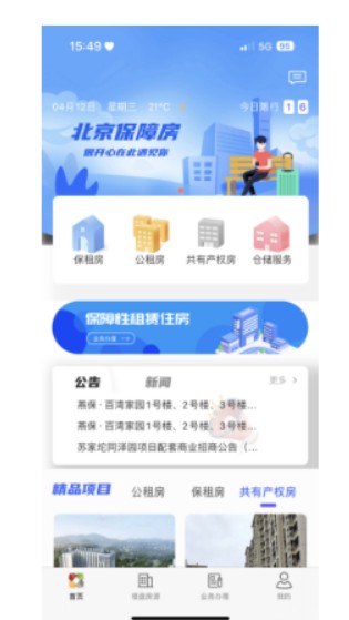 1、本页面下载安装,用户在安装完毕后,点击桌面图标即可进入 北京保障房APP 首页,首页界面如下图: