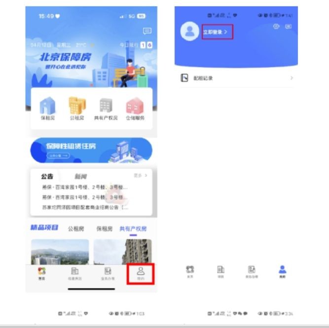 进入北京保障房app→点击“我的”→点击“我的记录”→点击“配租记录”