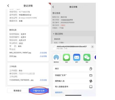 IOS系统 分享下载登记详情pdf文件操作如下图: