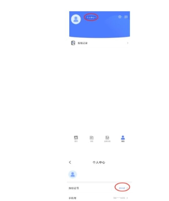 (1) 个人中心实名:进入首页,点击“我的”→点击“个人中心”→进入个人中心,点击“去认证”→填写姓名、身份号→点击认证