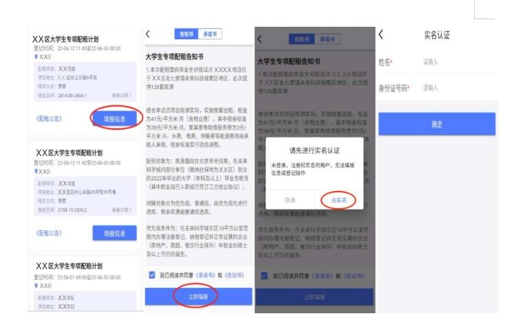 2、填报实名:进入配租页面→点击“填报信息”→进入告知书页面,