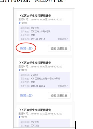 (2)查看项目详情,点击配租计划列表中的项目名称可以进入项目详情页面