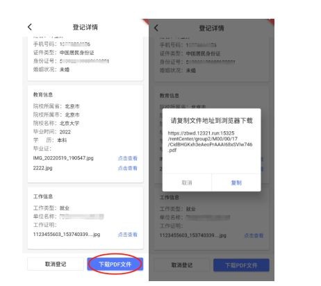 安卓系统 获取下载地址下载登记详情pdf文件操作如下图: