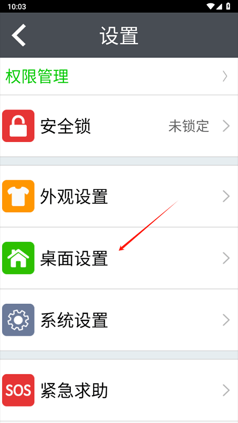 2、在设置页面内的点击桌面设置功能