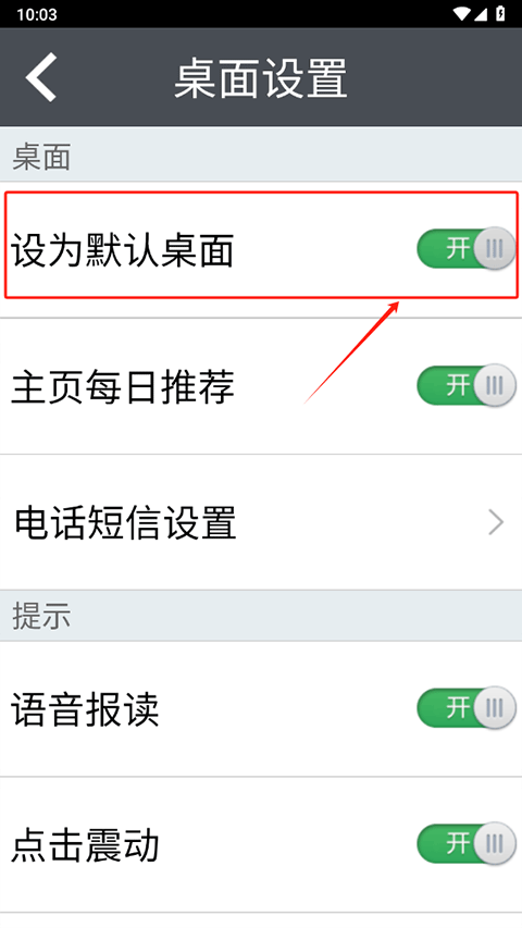 3、然后将设为默认桌面功能开启即可