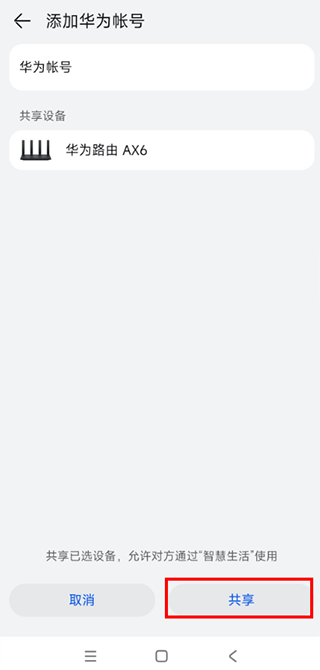 4、输入华为帐号,点击确定 > 共享