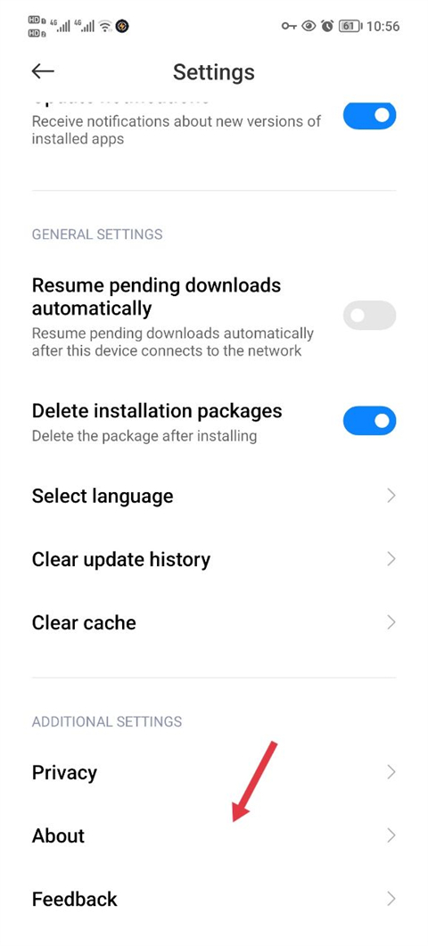 2、下拉找到about选项进入。