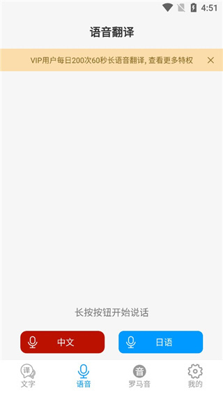 6、选择语音,可以长按对应的语言按钮说话进行翻译;