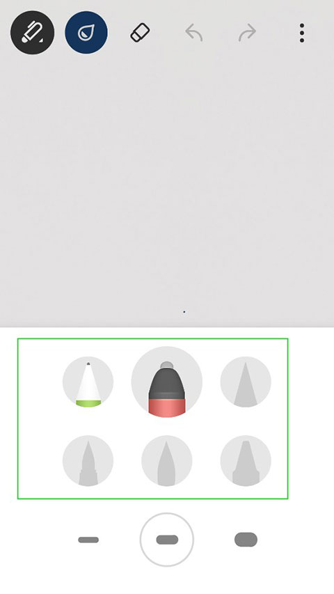 3. 按住绘图纸,弹出画笔选择。免费版提供三种笔刷和六种颜色可供选择。此外,在标记笔选项中有不同的厚度和颜色。这两种笔用起来还是不一样的。完成笔记后,您可以打印或保存它们。右上角的小标签可以用来设置这个页面的焦点,方便在页数增加的时候快速找到。