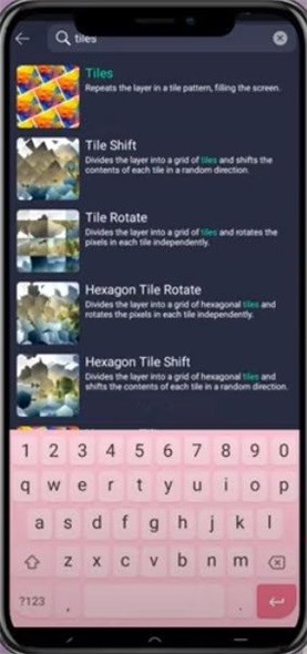 步骤四:搜索想要的影片效果,例如「Tiles」。