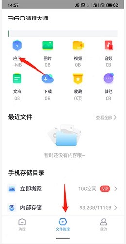 1、点击清理大师的文件管理界面,呈现应用、图片等文件分类,可查看手机存储目录情况。
