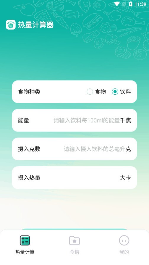 1、【热量计算】;根据食物种类(食物/饮料)来计算能量的摄入克数以及摄入的热量。