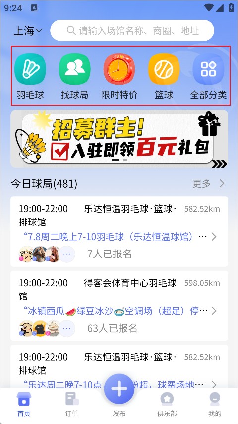 一键预订场馆