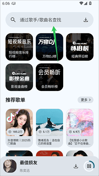 1、进入app后不用登录就可以通过搜索框搜索歌曲