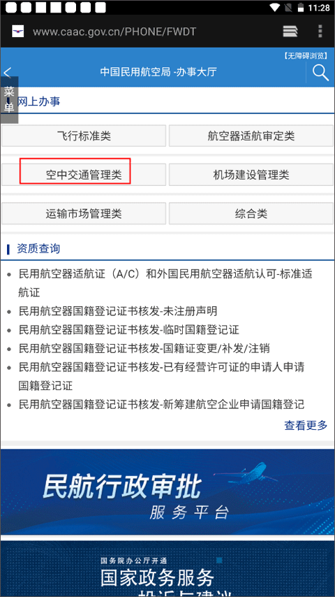 2、点击下方的网页版切换到中国民用航空局官网。