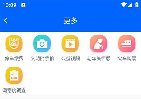 7、点击更多解锁停车缴费、文明随手拍、公益视频、火车购票等更多服务。