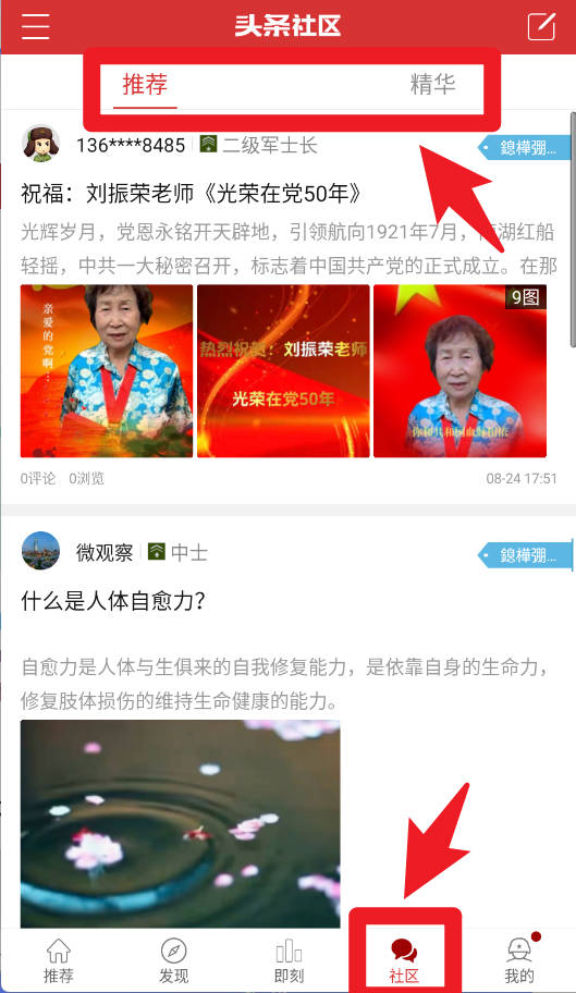 5、社区板块分为推荐和精华两类,用户可阅读、评论或发布内容,与其他军事爱好者交流观点,形成互动社区。