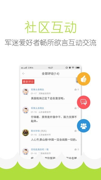 3、精选热门话题,时政军事、热点剖析,由你选择立场,宣扬观点,共建军迷爱好者社区。