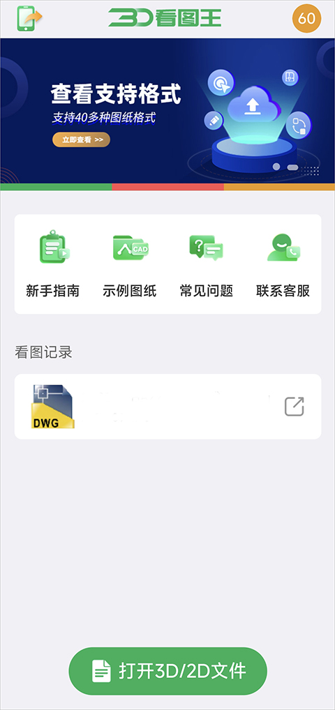 3D看图王app中查看过的图纸记录会保留30天后自动删除