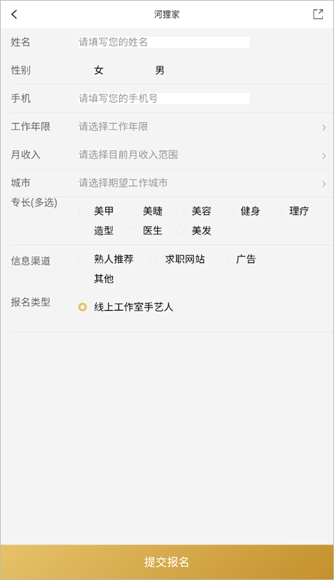 2、接着填写你的姓名、手机号、收入等信息,提交报名即可。