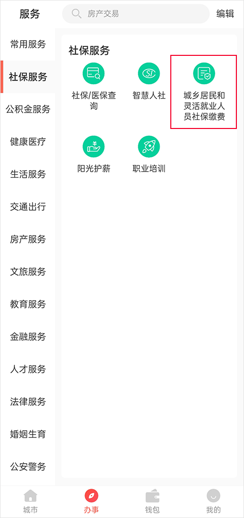 2、或者在办事模块,点击社保服务,点击城乡居民社保;