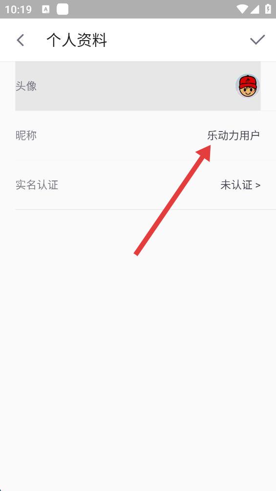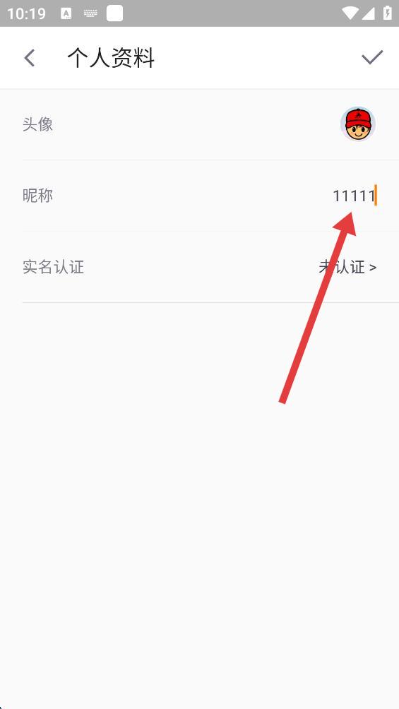 2、在个人资料页面里,点击昵称选项右侧的原昵称内容。