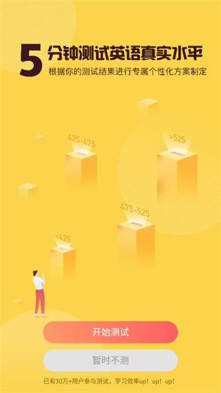 1、打开软件,选择花五分钟测试你的英语水平;