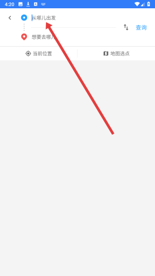 4、跳转到路线规划页面中,可点击输入框填写要出发的起点位置。