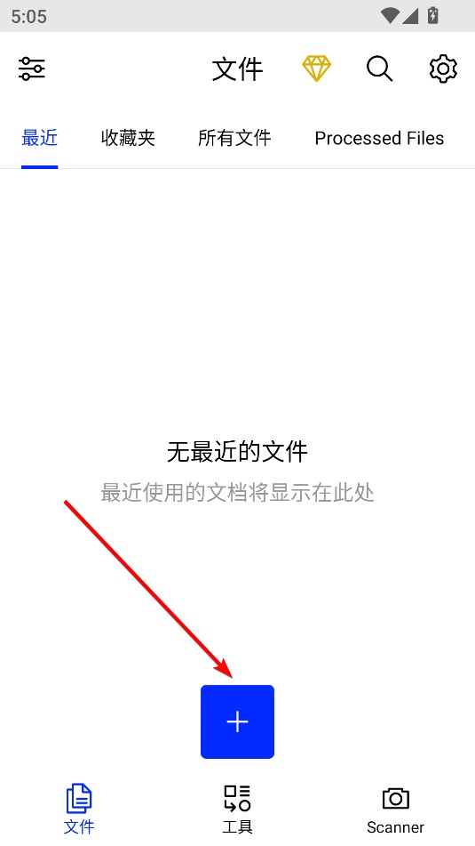 1、打开Xodo后,在文件界面点击下方的+