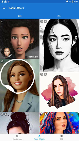 2、使用ToonMe中文版的人工智能魔术可以自动重画卡通或矢量风格的肖像。