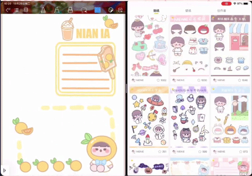 1、首先通过分屏模式将超萌鸭app和千本笔记同时在屏幕上打开